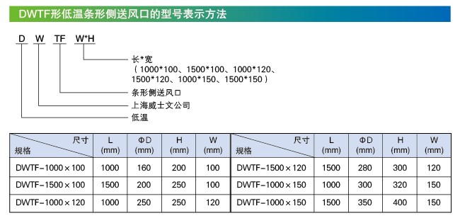 規(guī)格有1000*100、1500*100、1000*120、1500*120、1000*150、1500*150。風(fēng)口面板可以根據(jù)裝飾要求更換成各類防結(jié)露花板風(fēng)口。